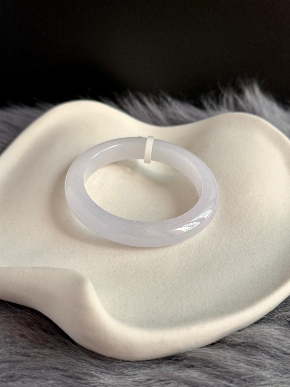 This icy faint lavender piece features unique light pastel pink-hued lavender. Main highlights of this piece: good icyness with very good wateriness and very refined grains for a pinkish tone lavender jadeite. Icy pink lavender pieces like these are commanding much higher in the market this year, typically above 5K. It’s an instant savings when you acquire a piece like this.