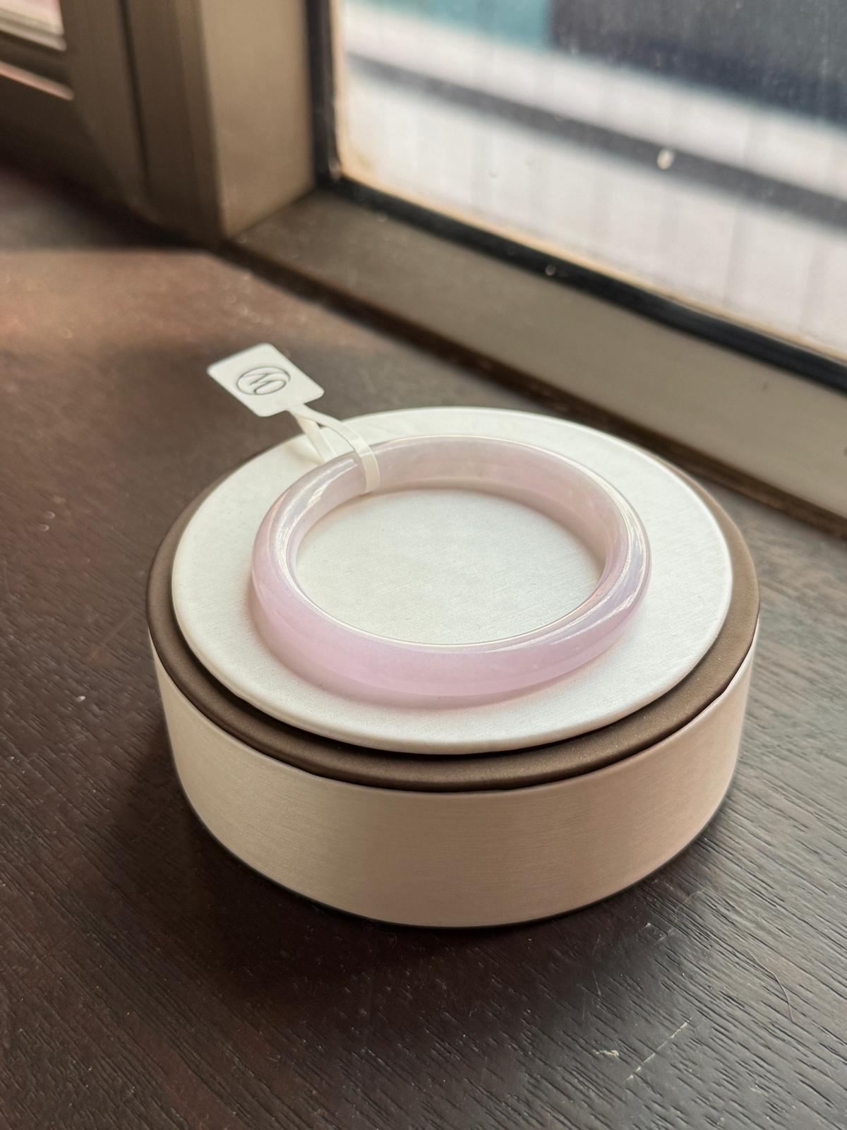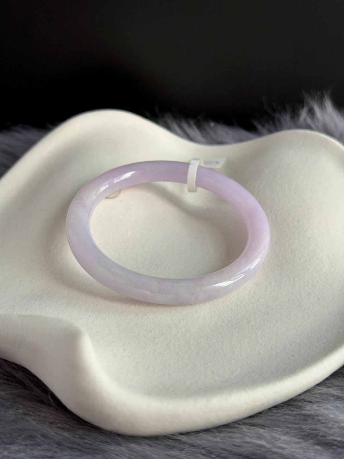 This vivid pinkish lavender piece features unique pink-hued lavender. Main highlights of this piece: mildly icy with very good wateriness and very refined grains for a pinkish tone lavender jadeite. Pinkish lavender pieces usually disappear quite a fair bit under the sun, this piece does not fade out because it’s jelly based. A rare find in this price range, please don’t miss this deal. An amazing deal!