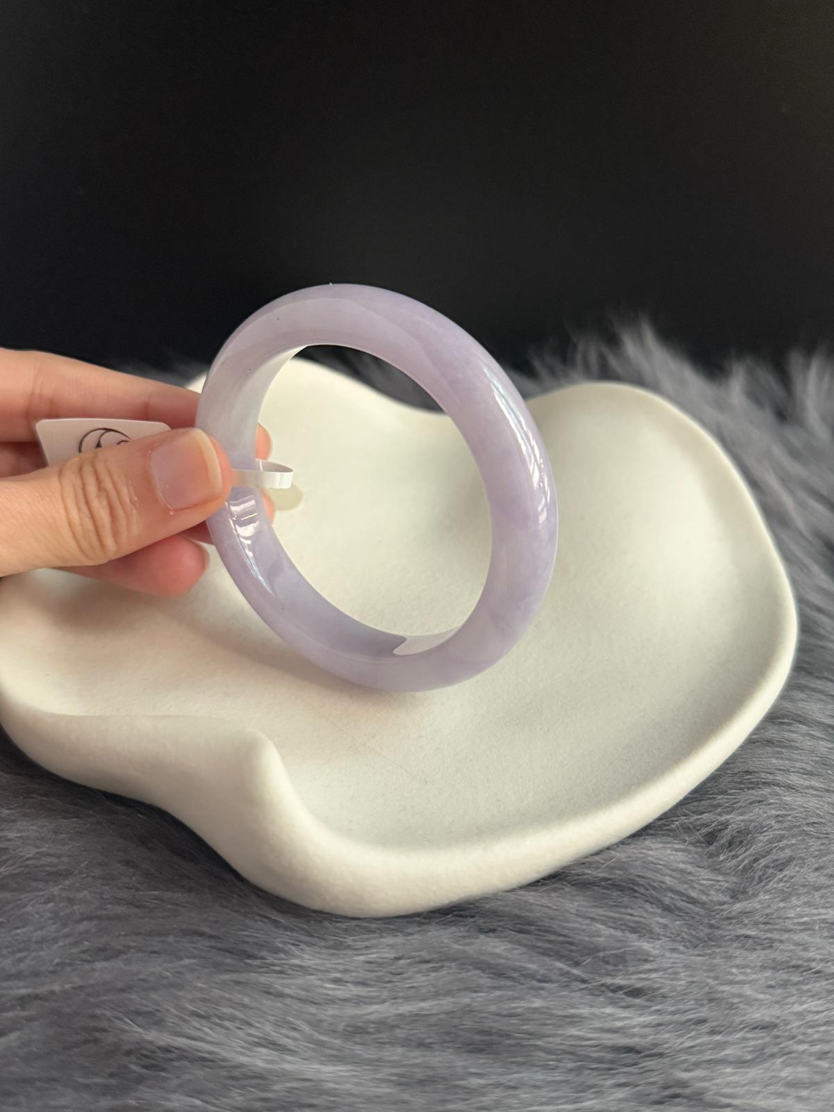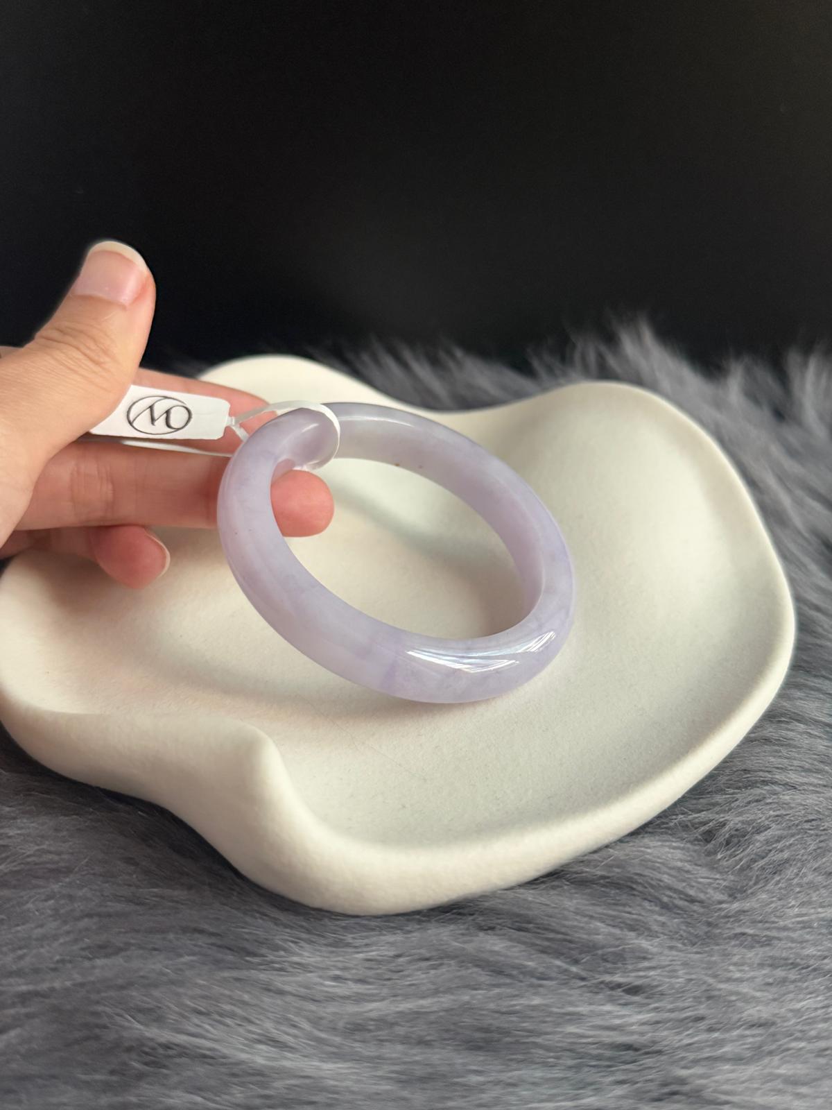 This piece resembles the actual lilac lavender colouration with refined grains, smooth sheen and good wateriness. It is an unique and rare piece with stronger lilac lavender streaks gently painted on pink-hue lavender base canvas. An amazing art-piece by mother nature. It is free from heavy cotton patches on the surface, dry dirt patches, or cracks.
