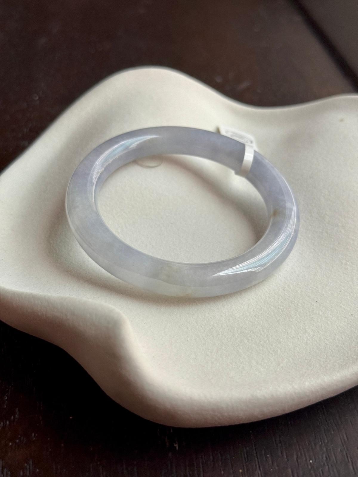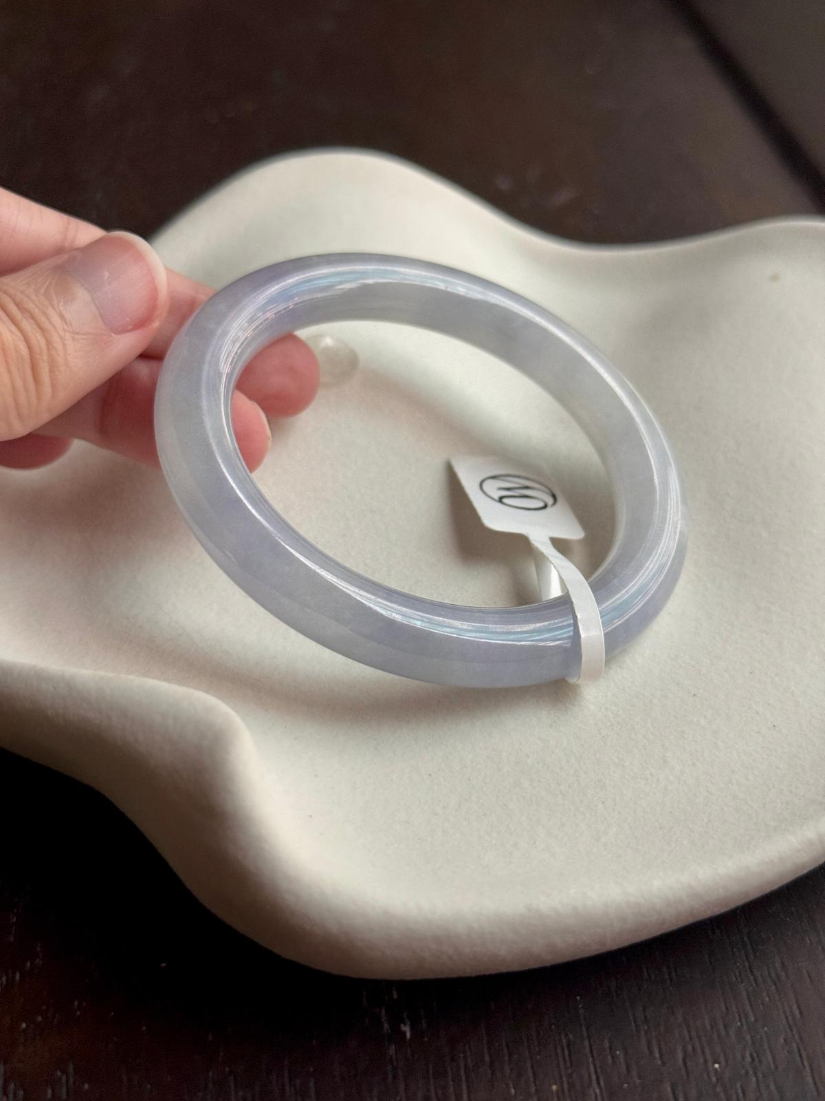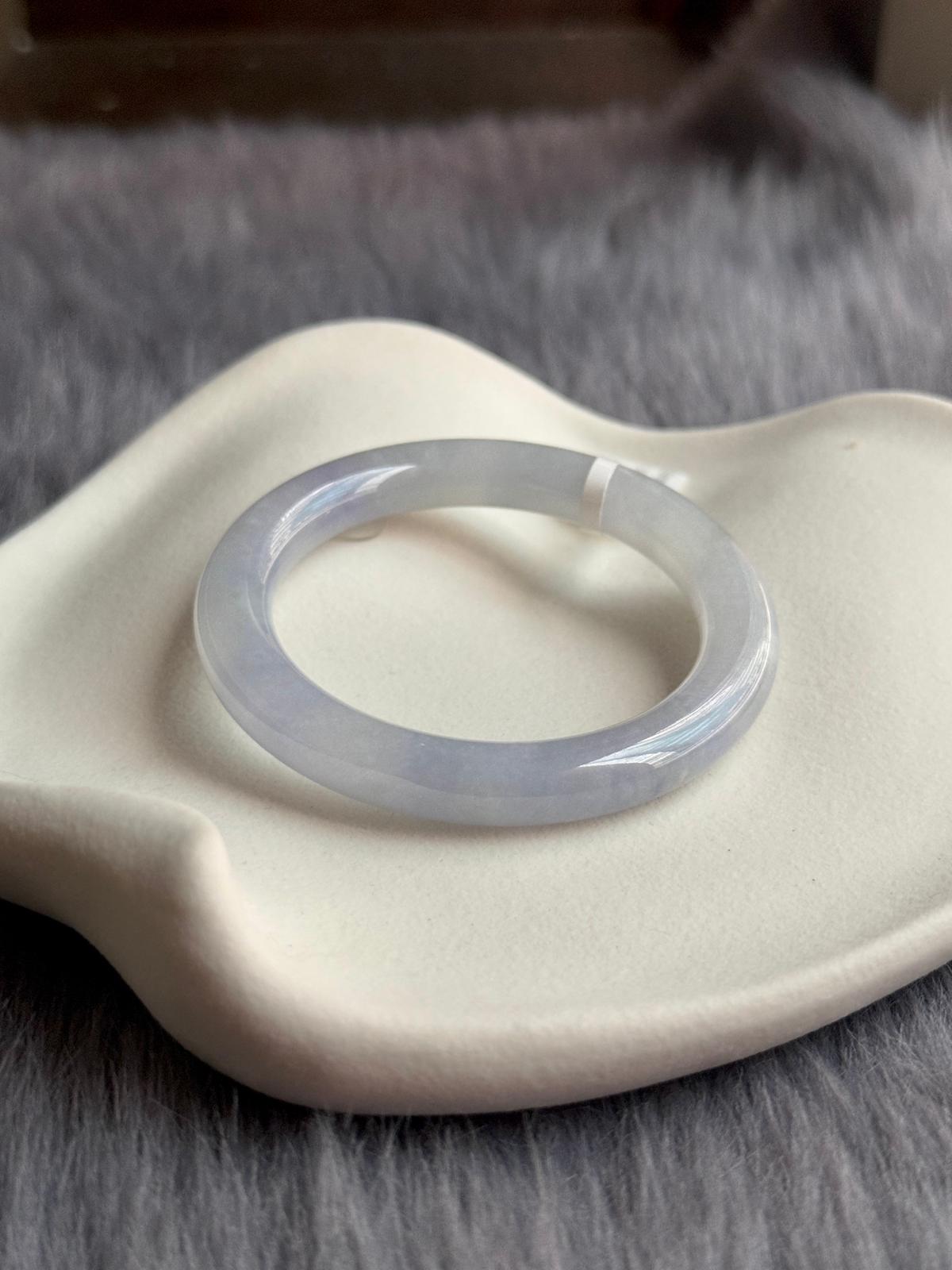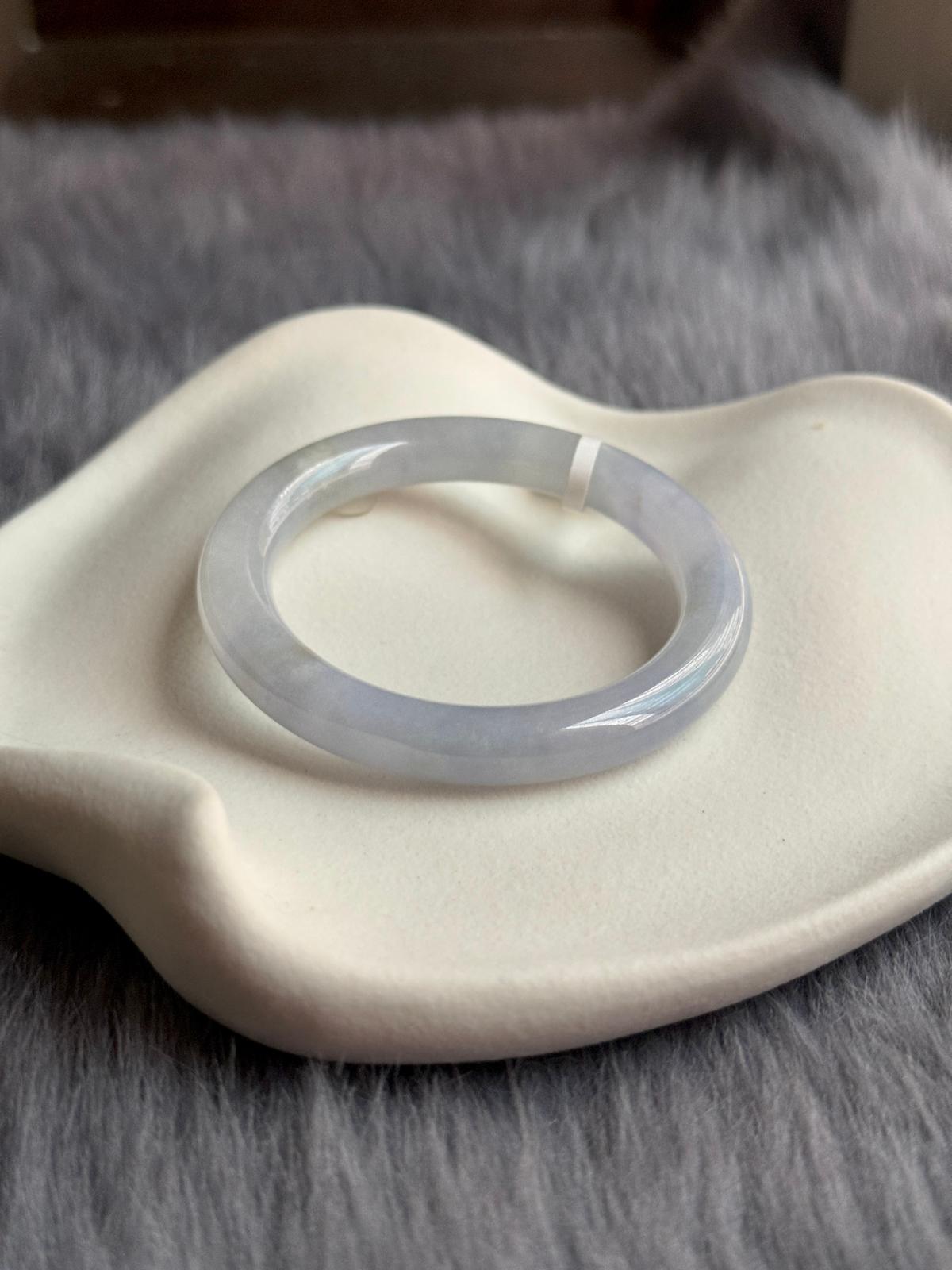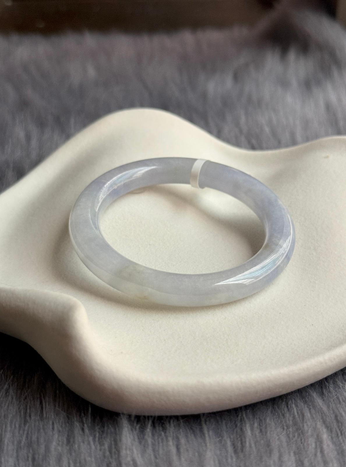 This icy bluish lavender bangle features subtle glow with gradient colouration. The delicate lavender hue, combined its excellent water and icyness creates a serene, enchanting piece. Its smooth texture and refined details make it a perfect choice for those who appreciate timeless, artistic elegance. It is free from lines, veins, or cracks.