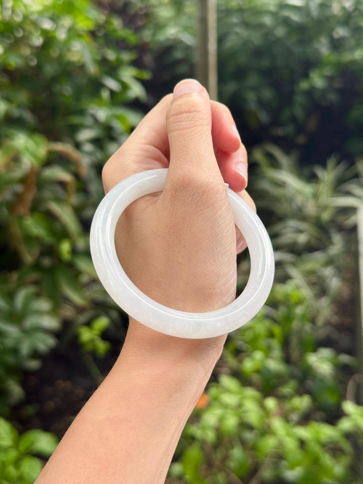 Crafted from an icy clean white jade stone, its excellent clarity and fine grain offer a bright, luminous look. This piece is certified natural jadeite, this piece is also free from any lines, patches, or imperfections, ensuring lasting beauty. Substantial yet comfortable enough for 24/7 wear, this is the accessible luxury piece that starts your collection and elevates your everyday style.