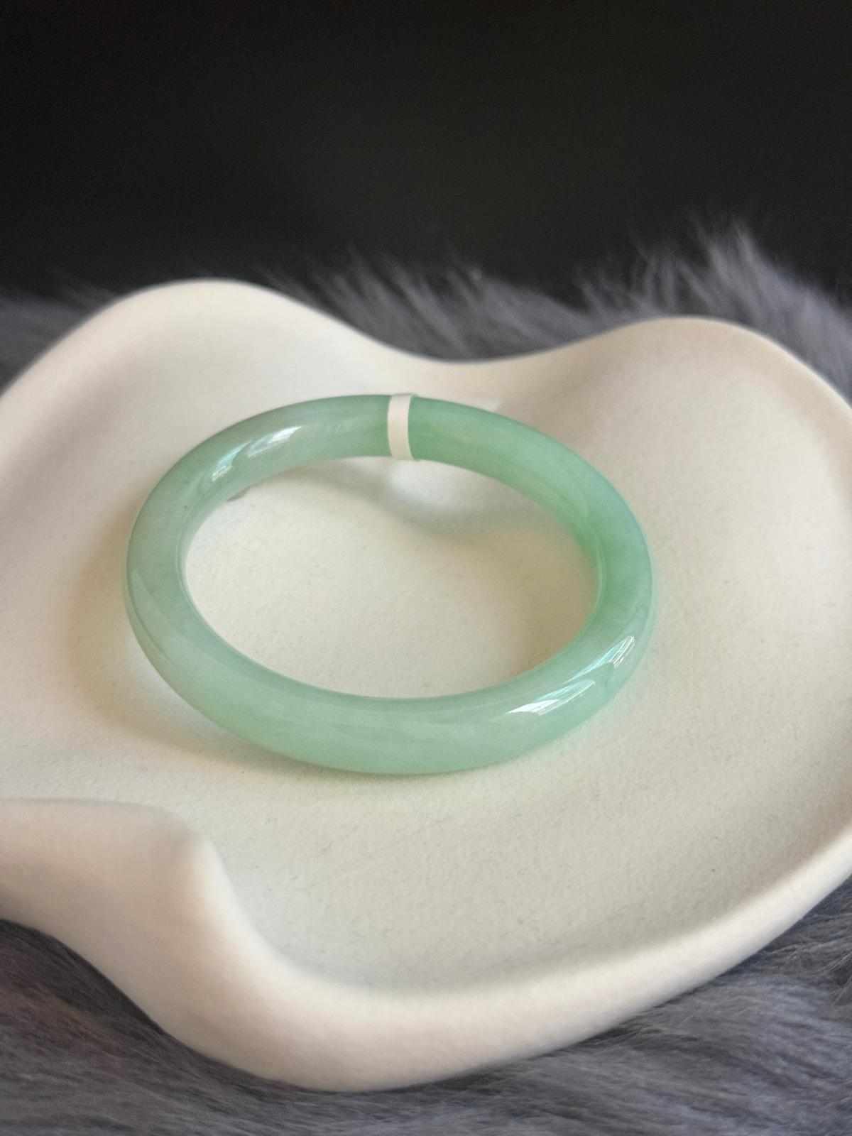 This piece showcases almost poreless jelly-liked texture, you could see its refined grains when viewed by the window side, photos captured via iPhone. It's a vivid tone of sunny apple green on one side with a slightly weaker colour on the other.