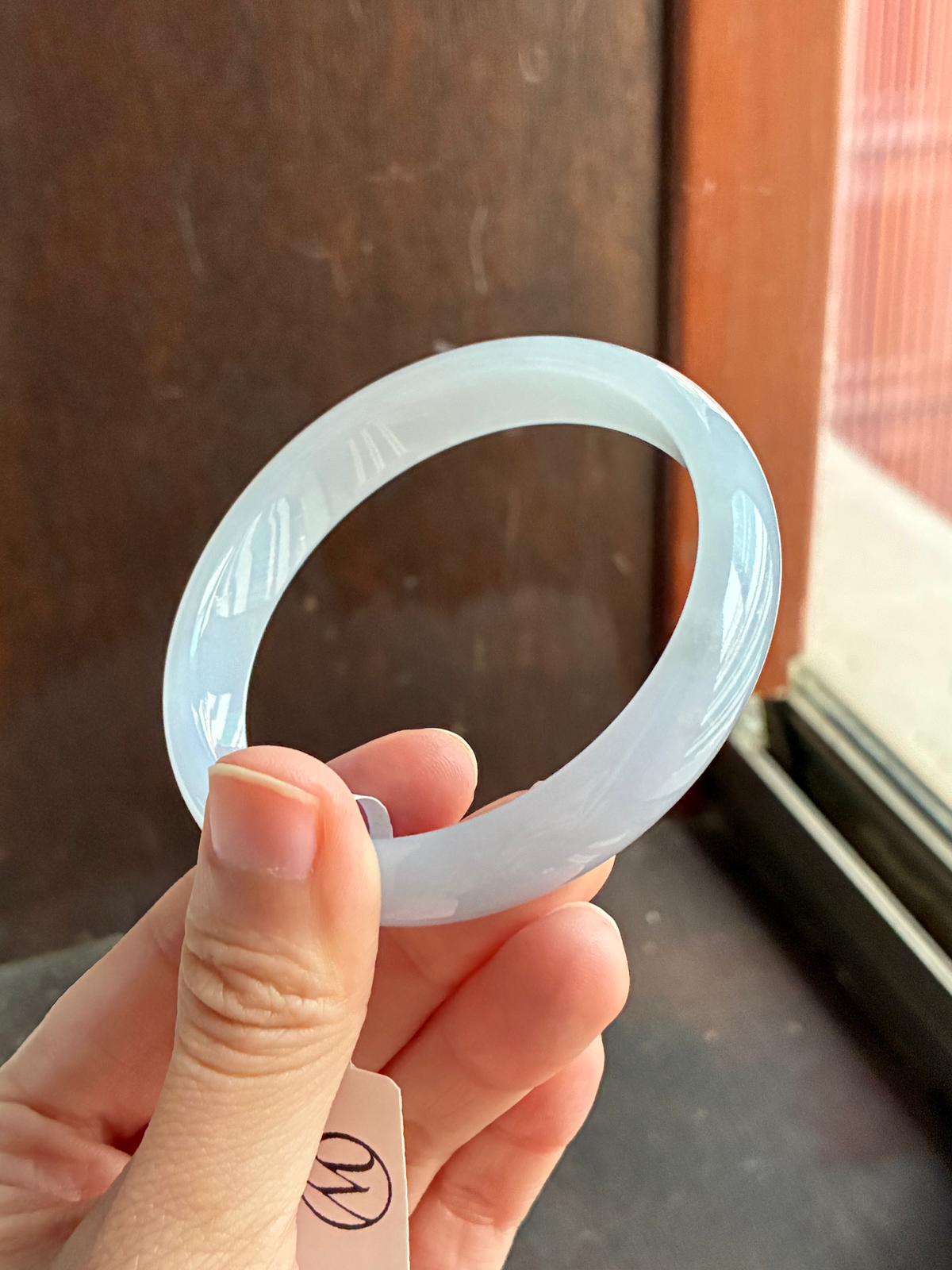 On the wrist, it feels light and effortless, its soft tones lending a calm, feminine presence without overwhelming. The colour remains delicate yet clear, making it an easy piece for everyday wear. A quietly refined bangle for those drawn to gentle hues and flawless texture.
